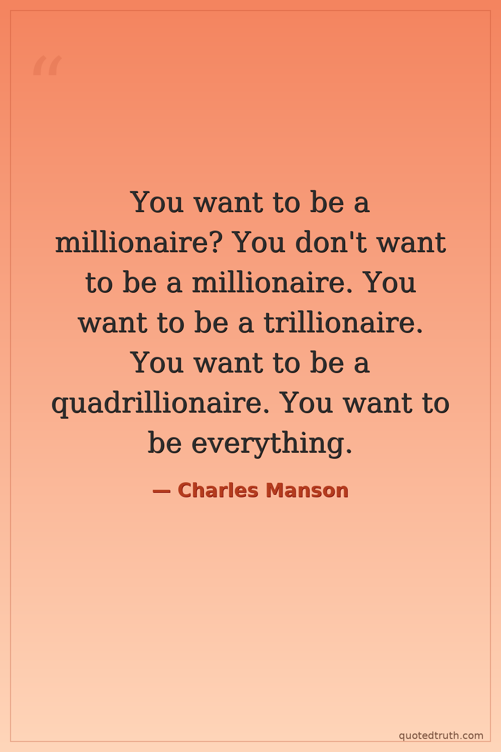 You want to be a millionaire? You don't want to be a millionaire. You want to be a trillionaire. You want to be a quadrillionaire. You want to be everything.