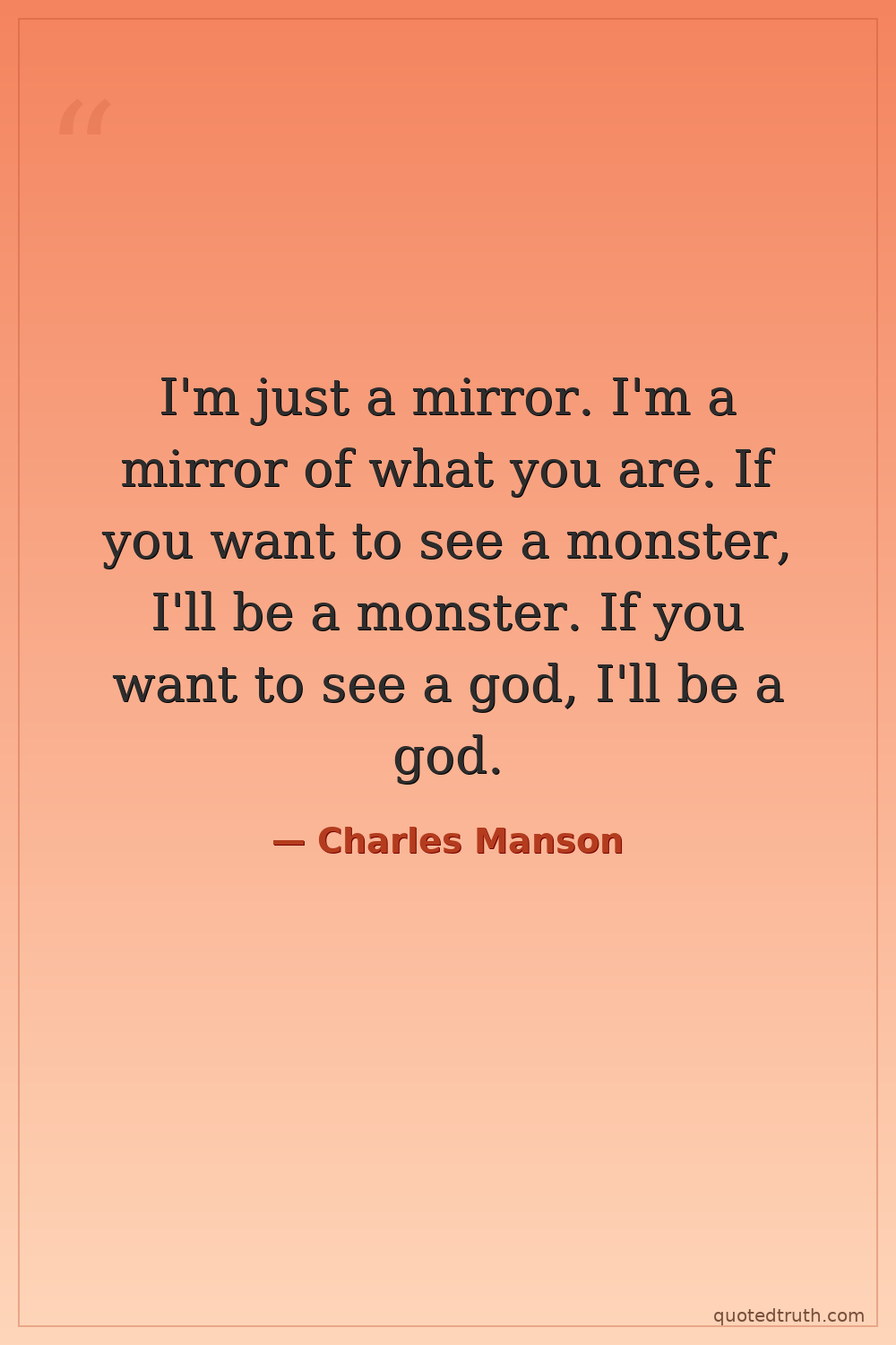 I'm just a mirror. I'm a mirror of what you are. If you want to see a monster, I'll be a monster. If you want to see a god, I'll be a god.
