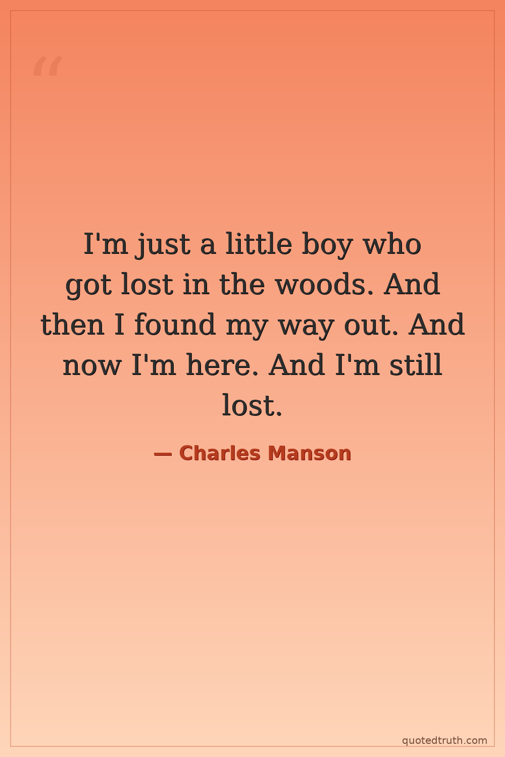I'm just a little boy who got lost in the woods. And then I found my way out. And now I'm here. And I'm still lost.