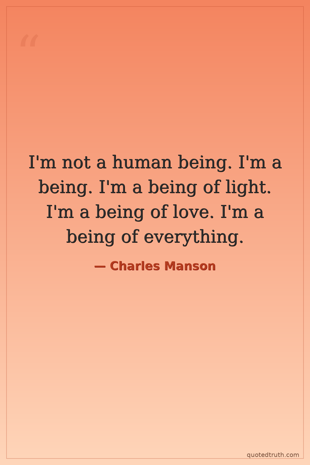 I'm not a human being. I'm a being. I'm a being of light. I'm a being of love. I'm a being of everything.