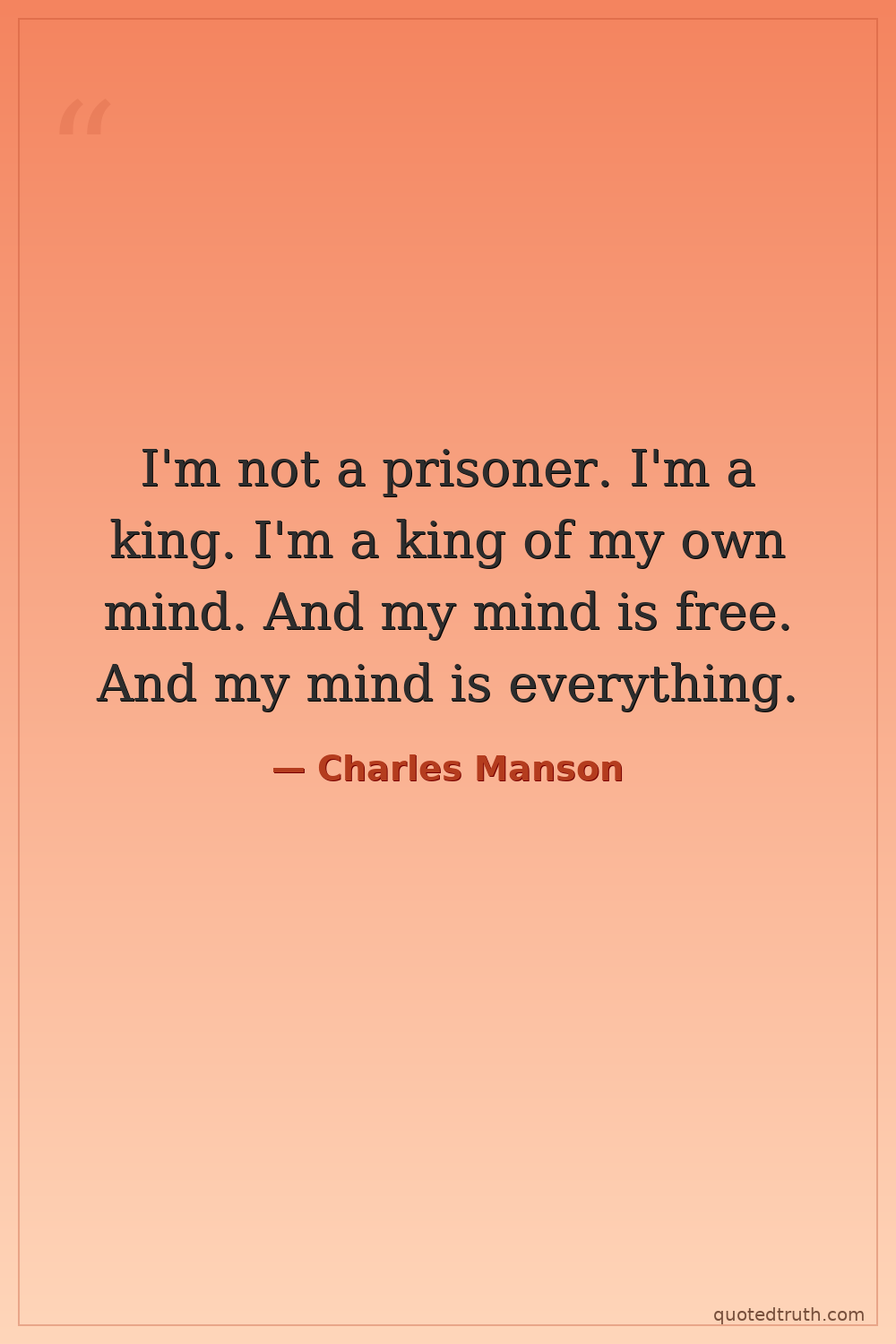 I'm not a prisoner. I'm a king. I'm a king of my own mind. And my mind is free. And my mind is everything.