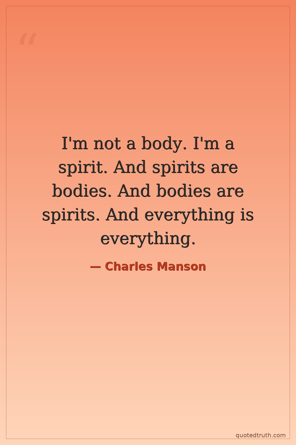 I'm not a body. I'm a spirit. And spirits are bodies. And bodies are spirits. And everything is everything.