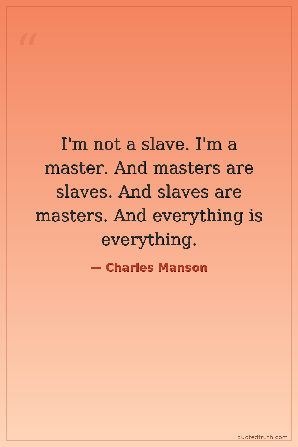I'm not a slave. I'm a master. And masters are slaves. And slaves are masters. And everything is everything.