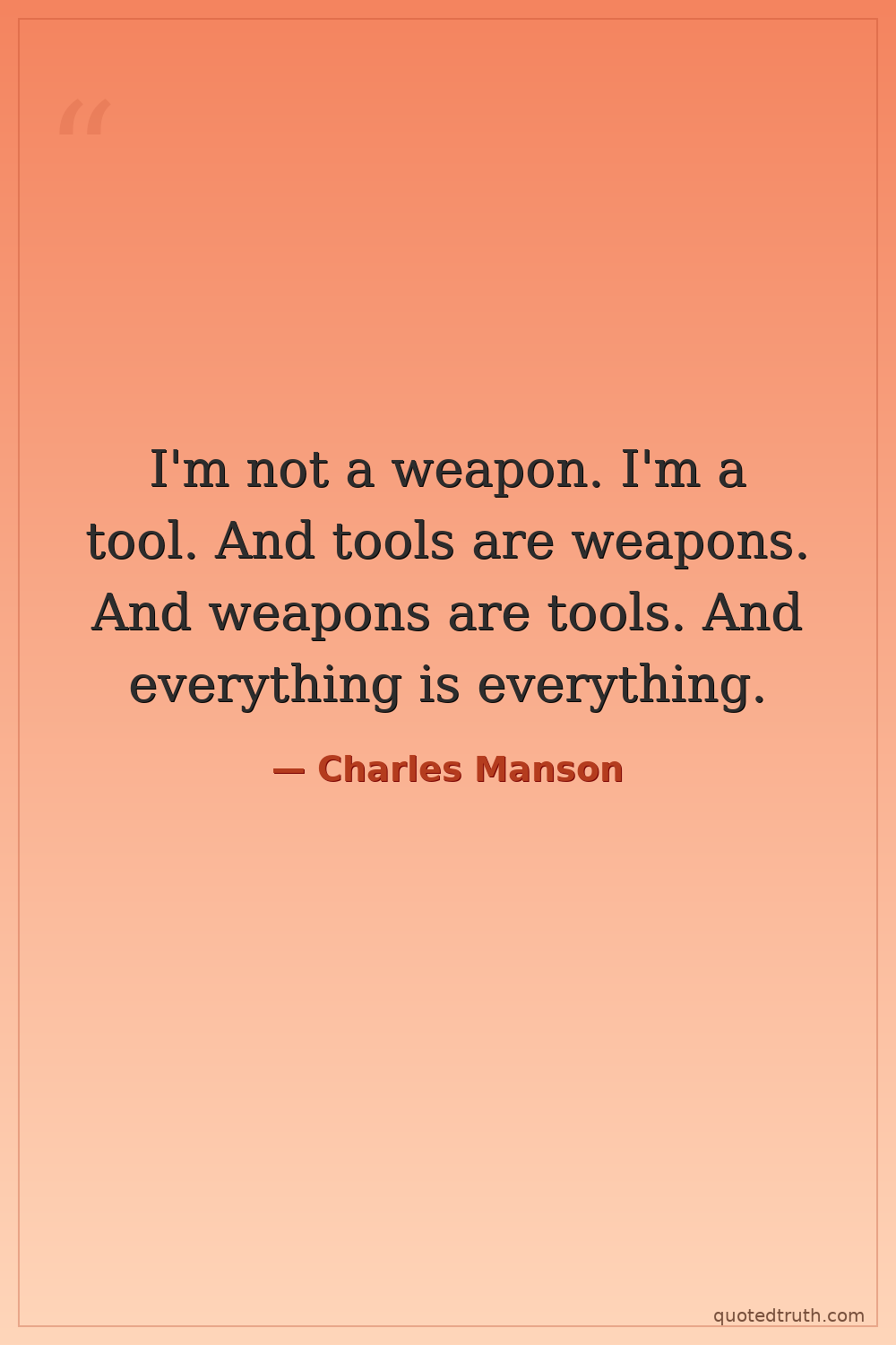 I'm not a weapon. I'm a tool. And tools are weapons. And weapons are tools. And everything is everything.