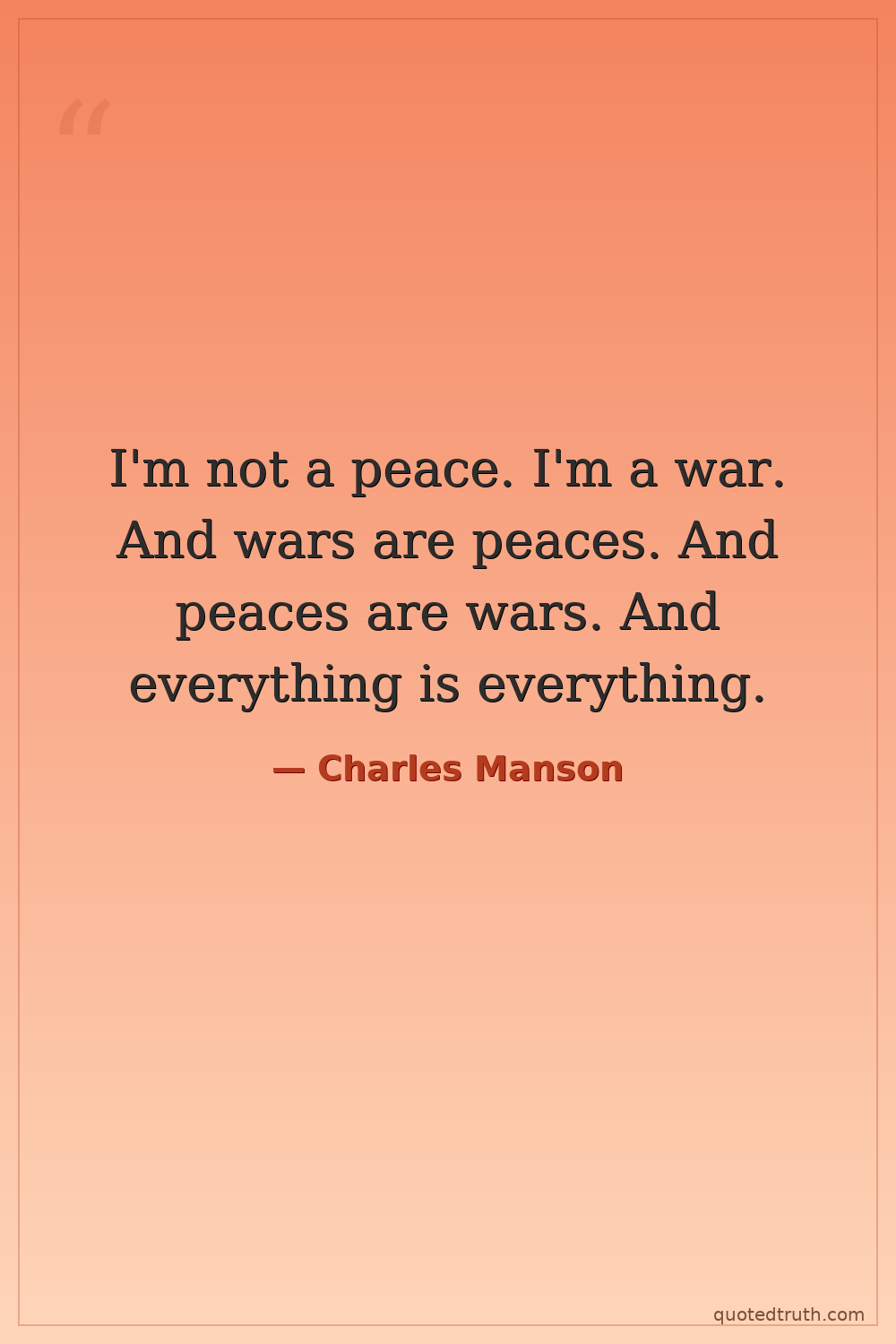 I'm not a peace. I'm a war. And wars are peaces. And peaces are wars. And everything is everything.