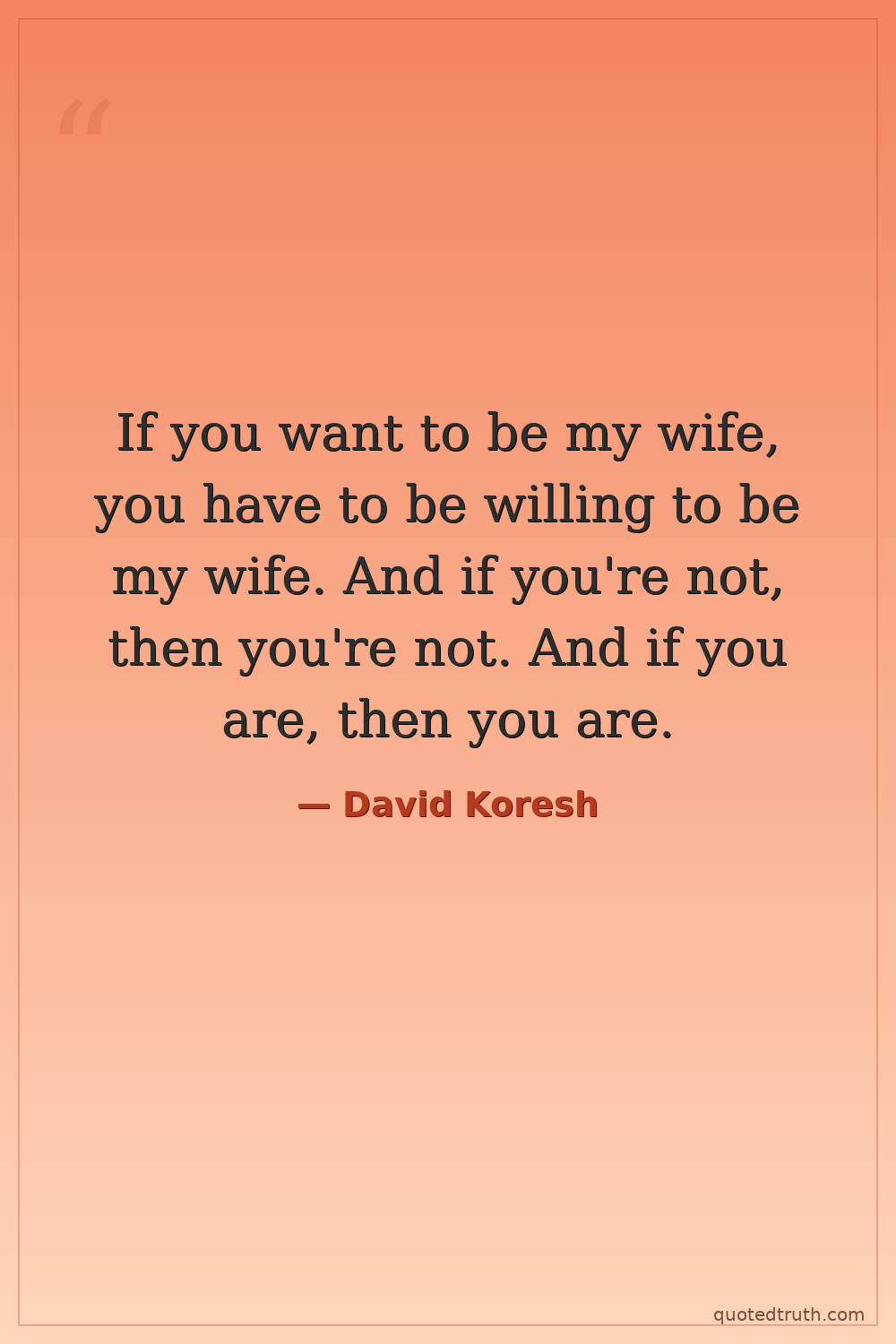 If you want to be my wife, you have to be willing to be my wife. And if you're not, then you're not. And if you are, then you are.