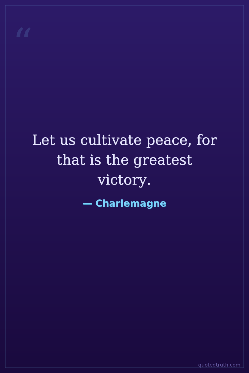 Let us cultivate peace, for that is the greatest victory.