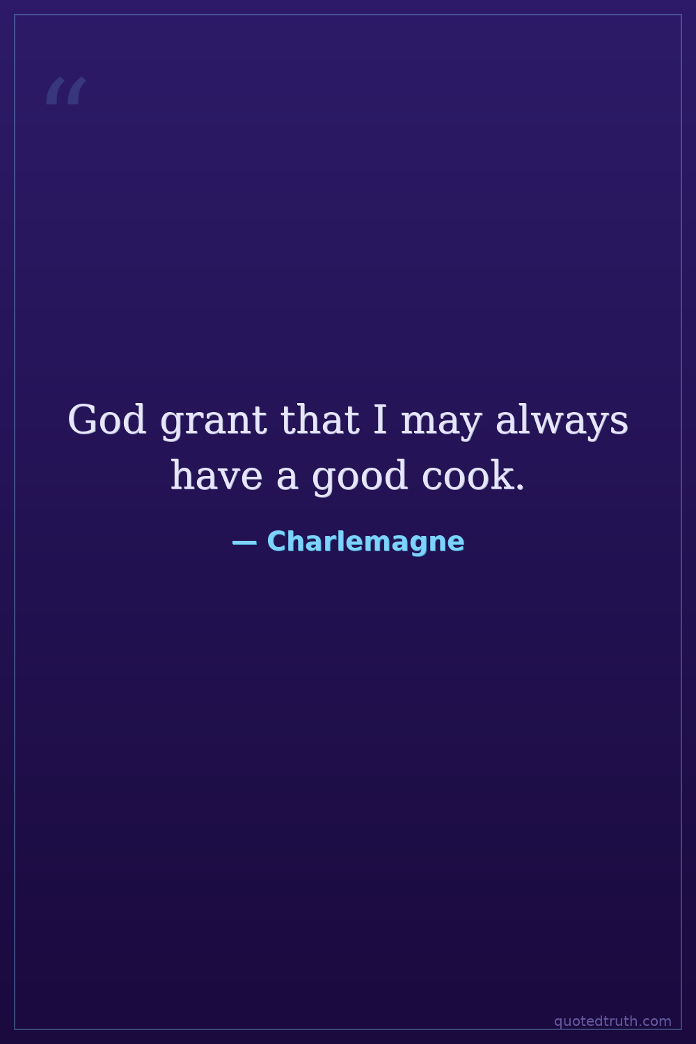 God grant that I may always have a good cook.