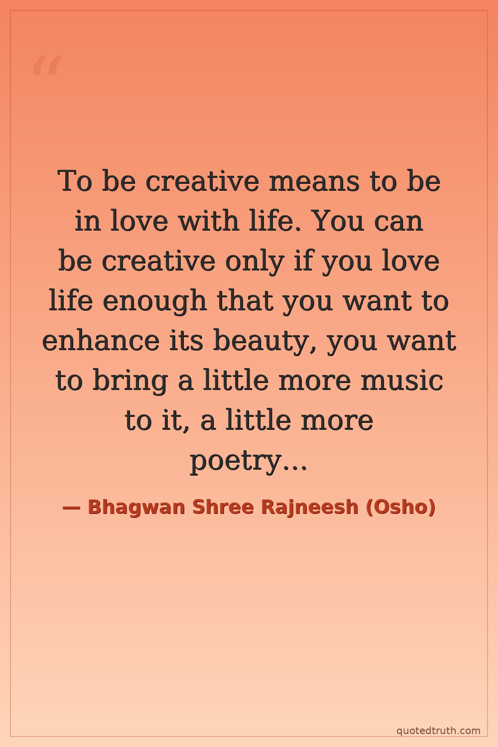 To be creative means to be in love with life. You can be creative only if you love life enough that you want to enhance its beauty, you want to bring a little more music to it, a little more poetry to it, a little more dance to it. — Bhagwan Shree Rajneesh (Osho) Contemporary Guru, 93 Rolls Royces