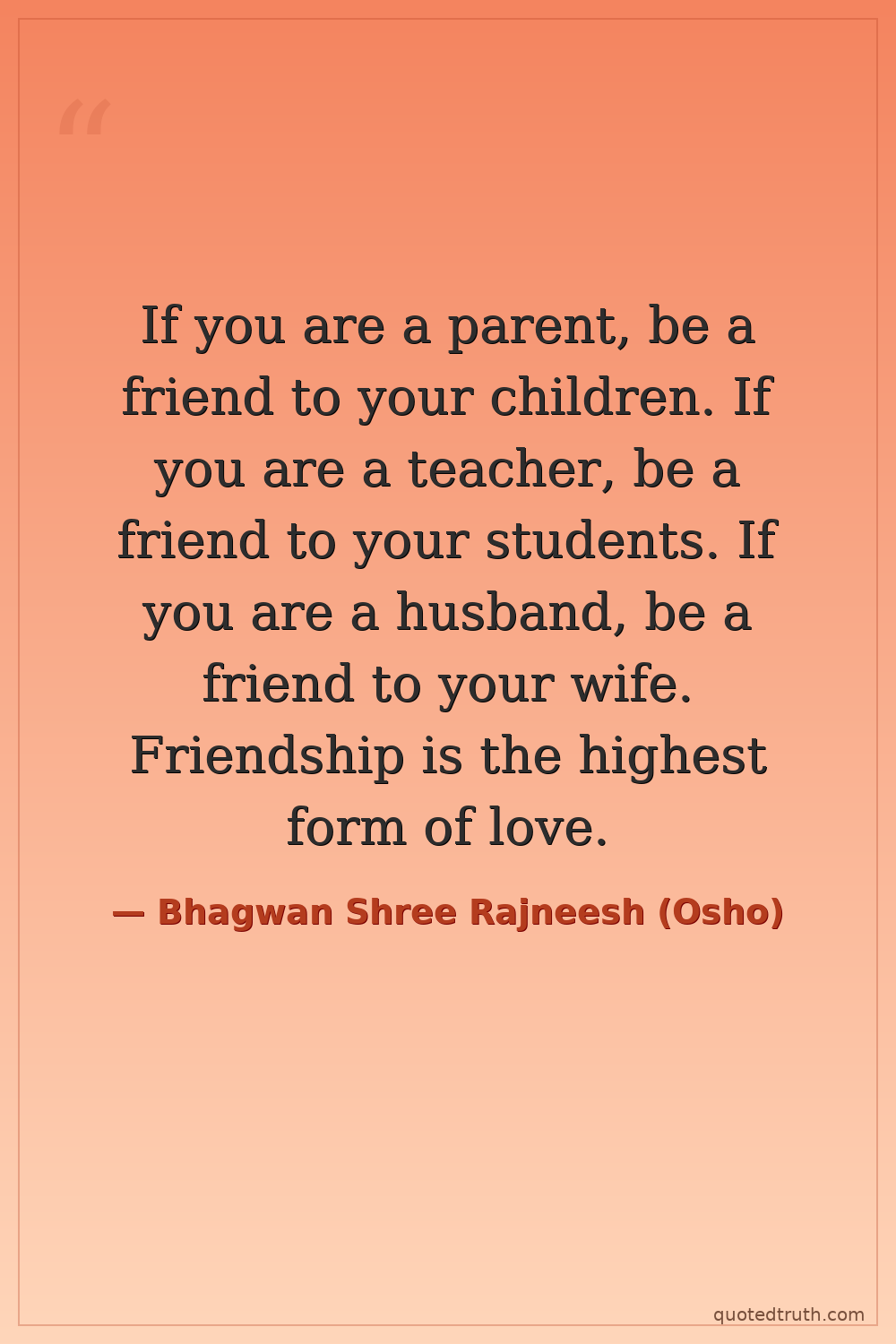 If you are a parent, be a friend to your children. If you are a teacher, be a friend to your students. If you are a husband, be a friend to your wife. Friendship is the highest form of love.