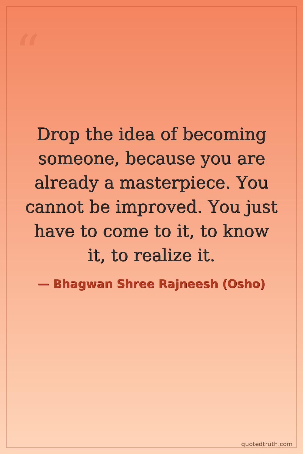 Drop the idea of becoming someone, because you are already a masterpiece. You cannot be improved. You just have to come to it, to know it, to realize it.