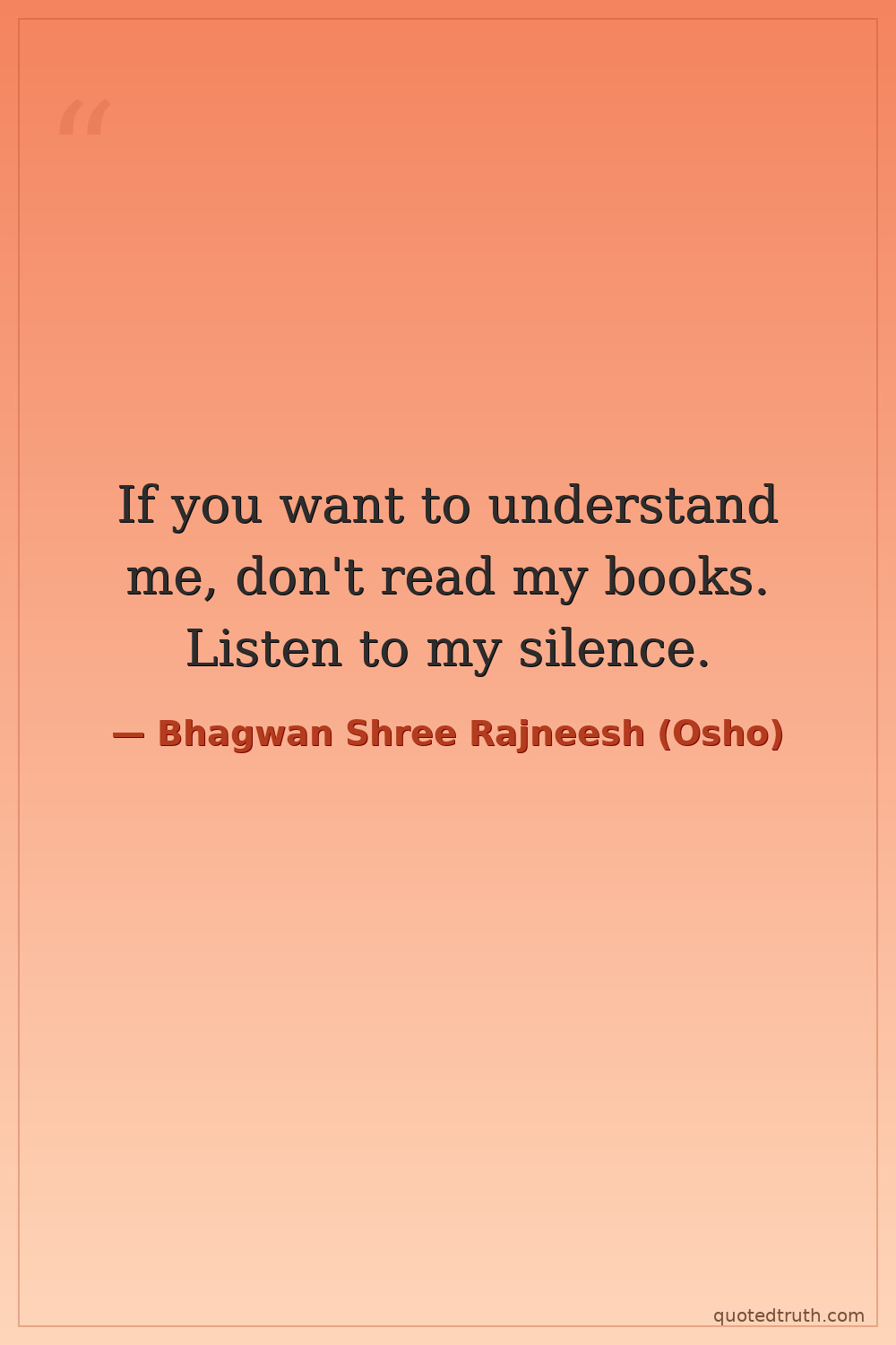 If you want to understand me, don't read my books. Listen to my silence.