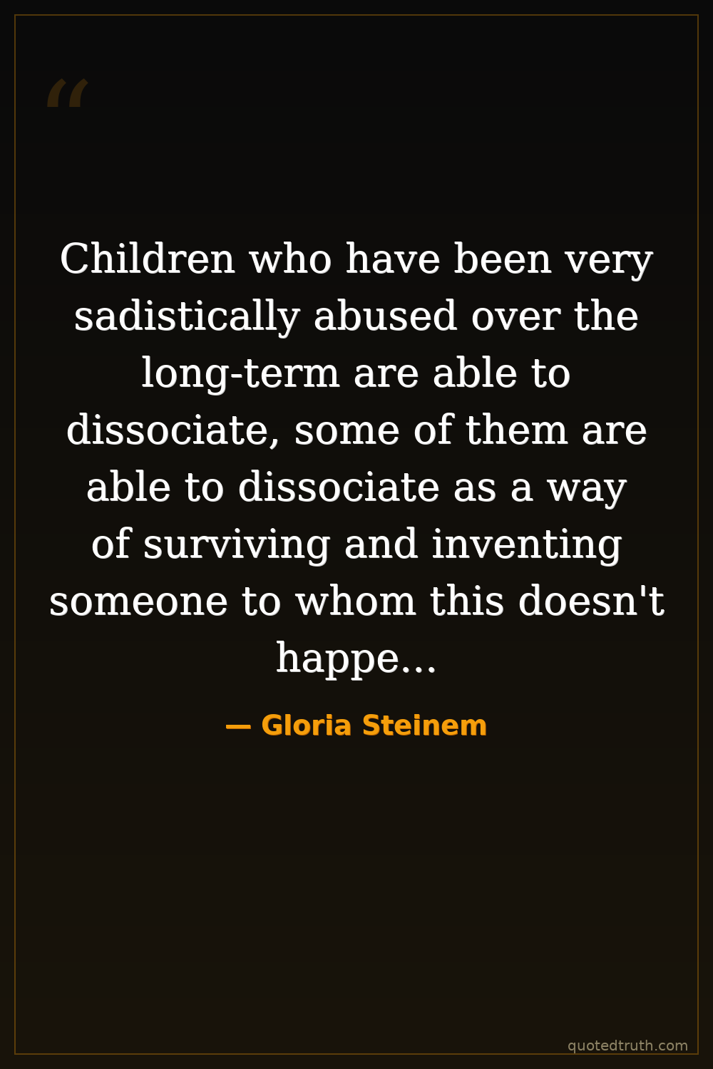 Children who have been very sadistically abused over the long-term are able to dissociate, some of them are able to dissociate as a way of surviving and inventing someone to whom this doesn't happen. And so therefore, they invent within themselves different personalities who have life histories of their own. Many people invent an opposite gender personality as well.