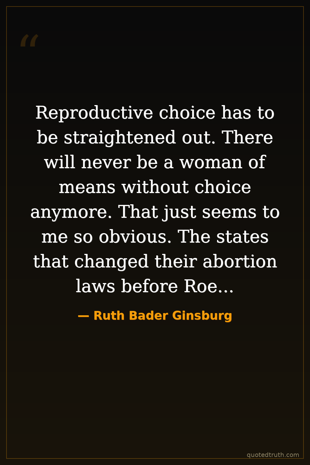 Reproductive choice has to be straightened out. There will never be a woman of means without choice anymore. That just seems to me so obvious. The states that changed their abortion laws before Roe are not going to change back. So we have a policy that only affects poor women, and it can never be otherwise.