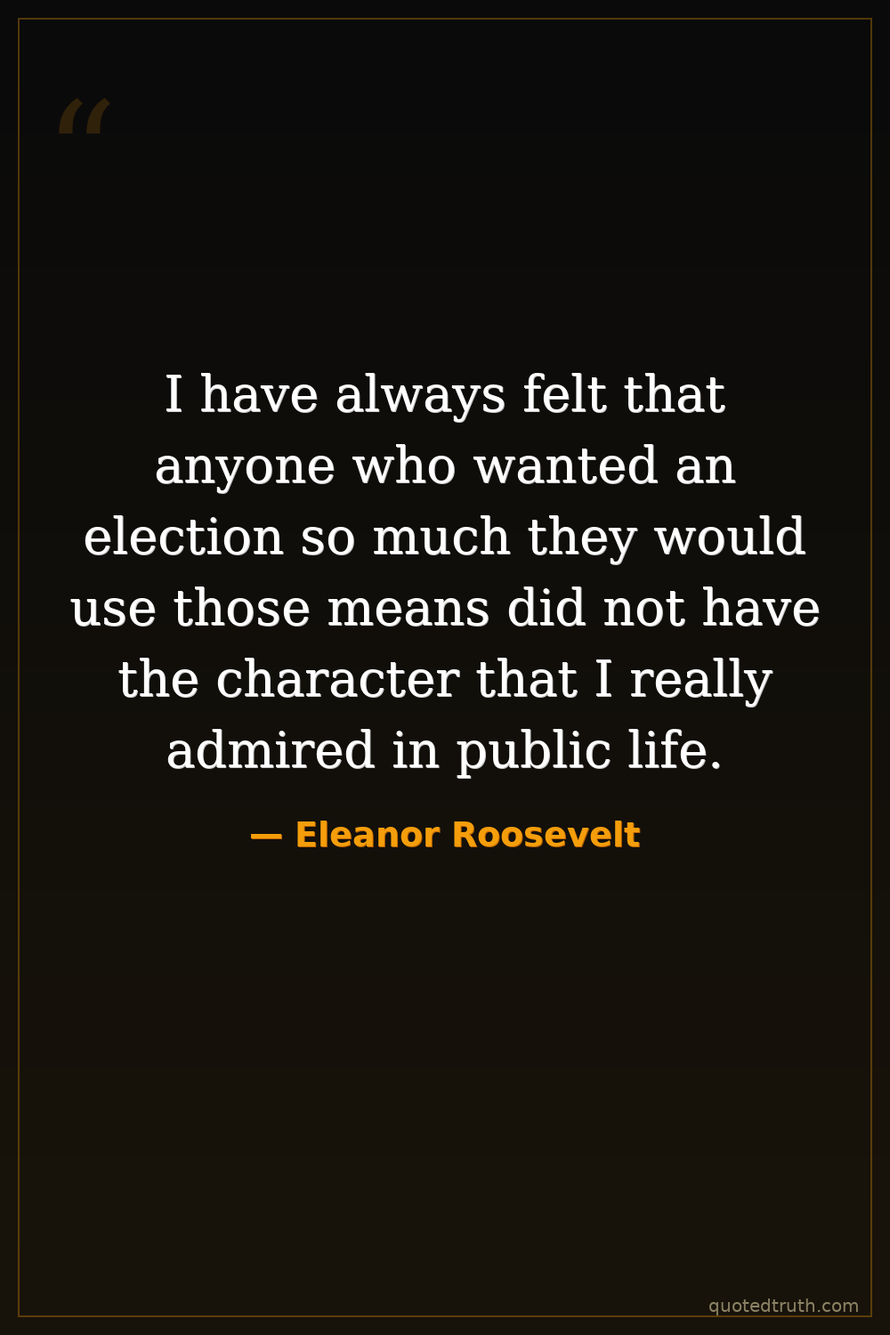 I have always felt that anyone who wanted an election so much they would use those means did not have the character that I really admired in public life.
