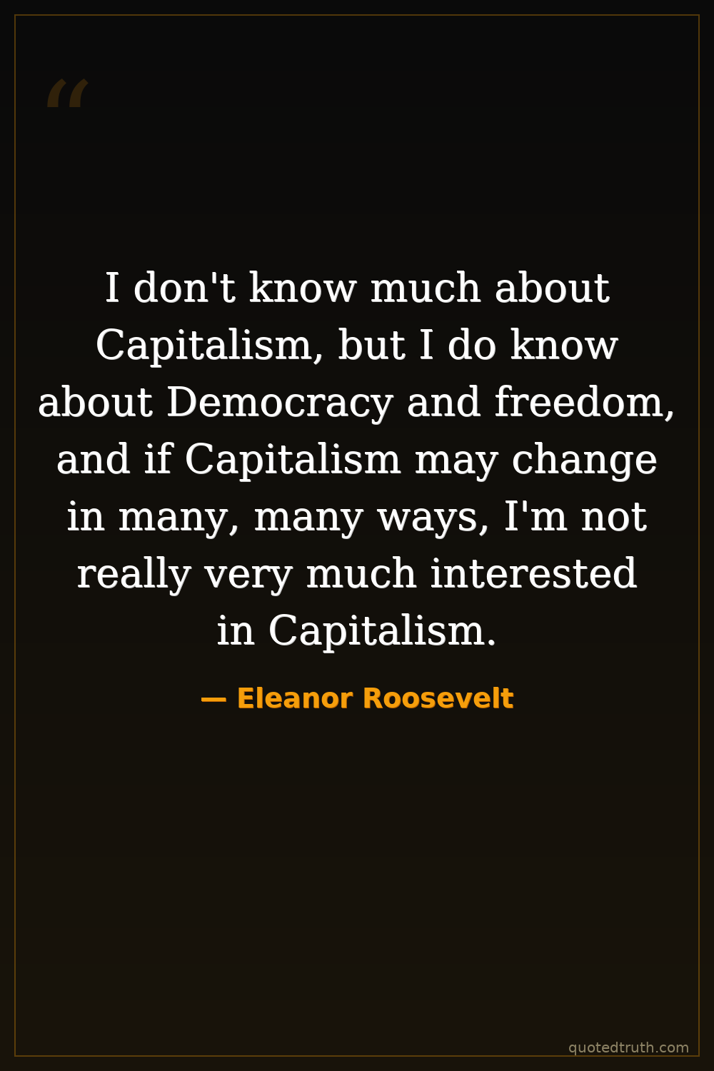 I don't know much about Capitalism, but I do know about Democracy and freedom, and if Capitalism may change in many, many ways, I'm not really very much interested in Capitalism.
