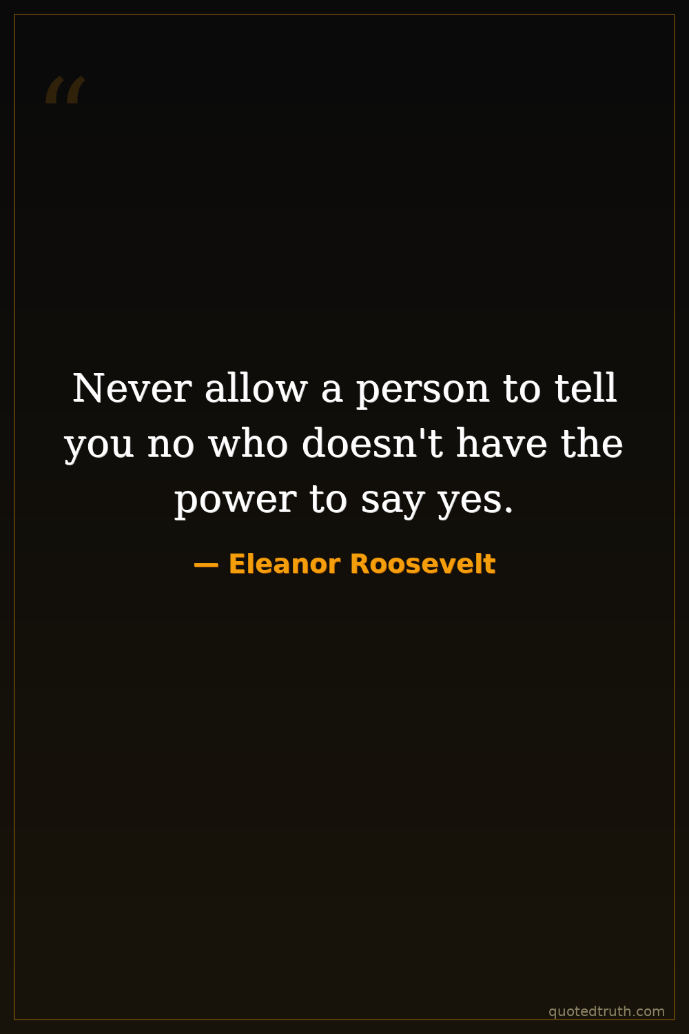 Never allow a person to tell you no who doesn't have the power to say yes.