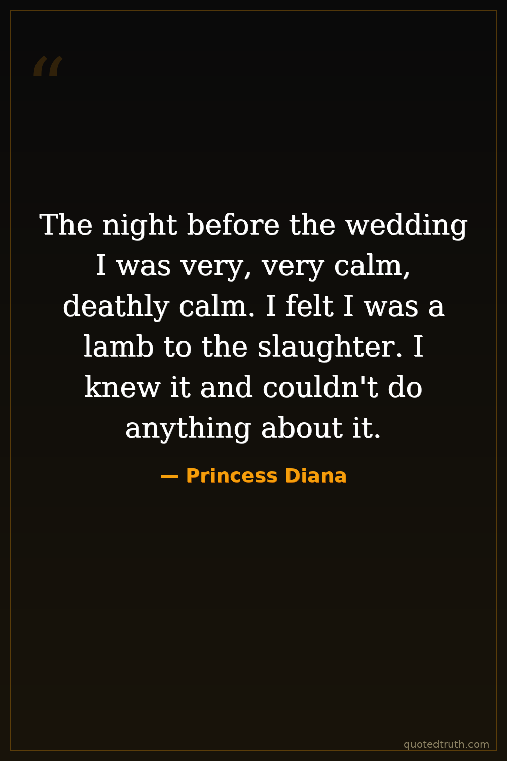 The night before the wedding I was very, very calm, deathly calm. I felt I was a lamb to the slaughter. I knew it and couldn't do anything about it.