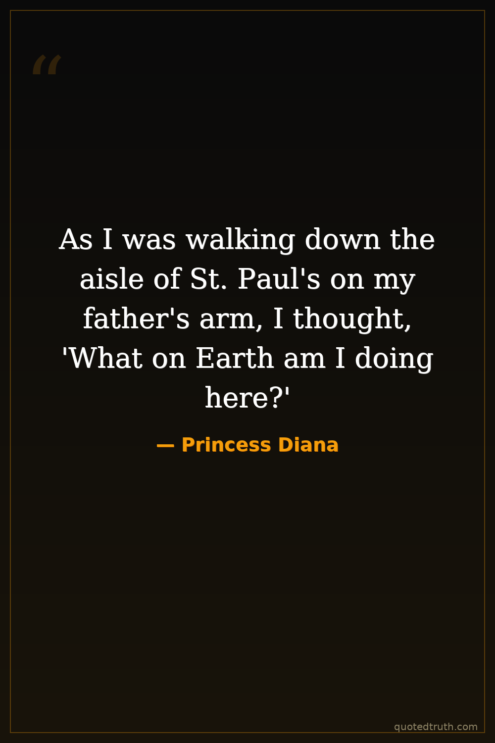 As I was walking down the aisle of St. Paul's on my father's arm, I thought, 'What on Earth am I doing here?'