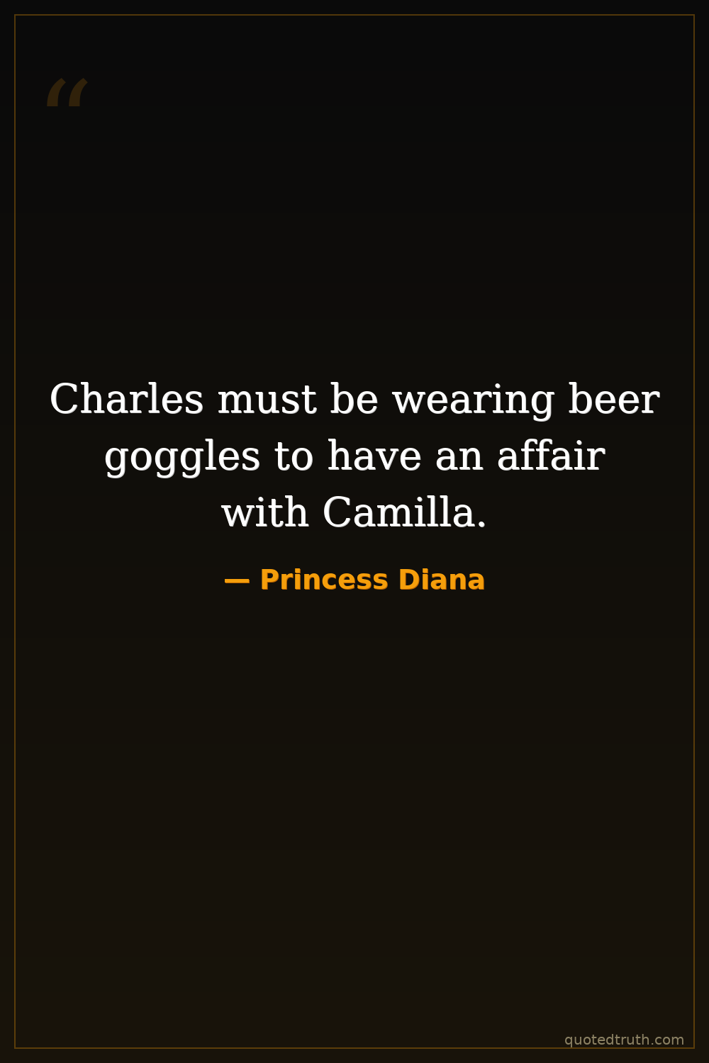 Charles must be wearing beer goggles to have an affair with Camilla.