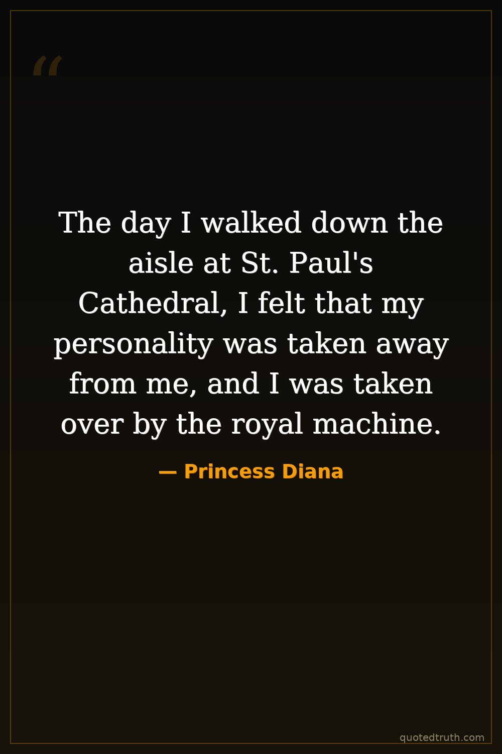 The day I walked down the aisle at St. Paul's Cathedral, I felt that my personality was taken away from me, and I was taken over by the royal machine.