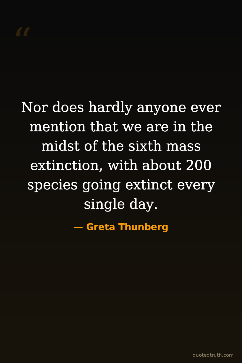 Nor does hardly anyone ever mention that we are in the midst of the sixth mass extinction, with about 200 species going extinct every single day.
