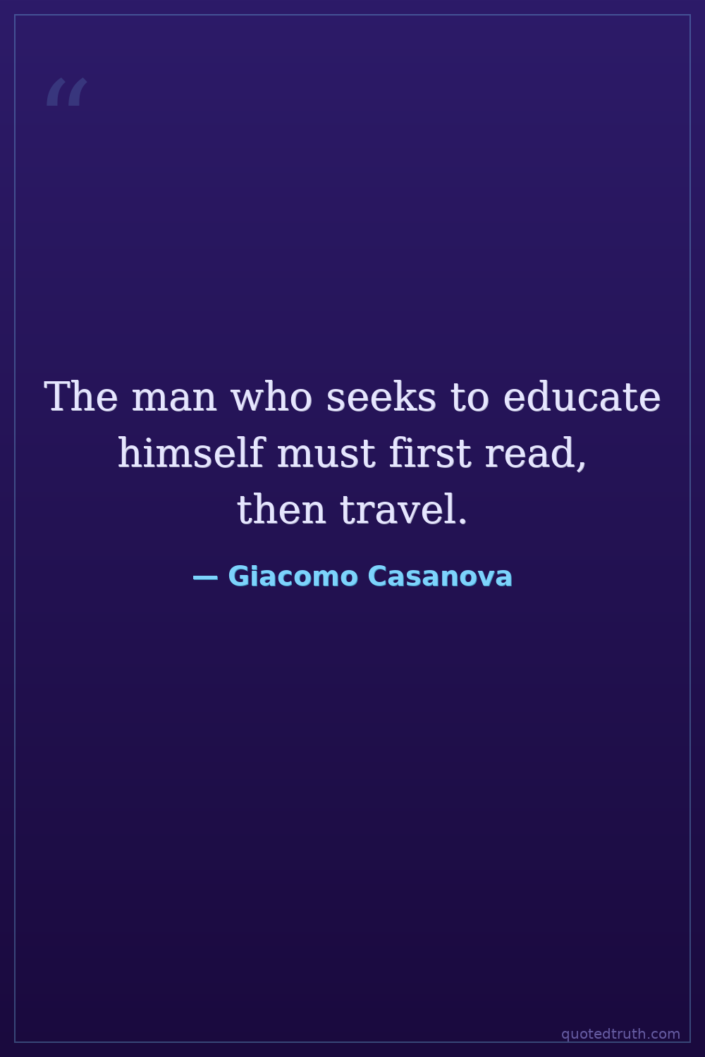 The man who seeks to educate himself must first read, then travel.