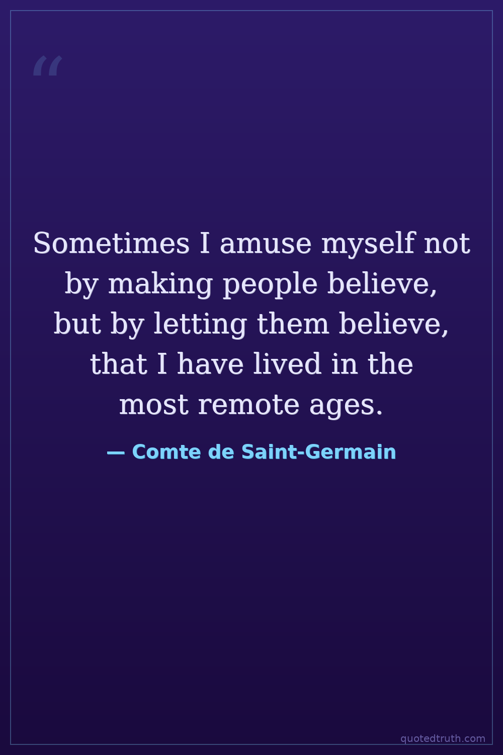 Sometimes I amuse myself not by making people believe, but by letting them believe, that I have lived in the most remote ages.