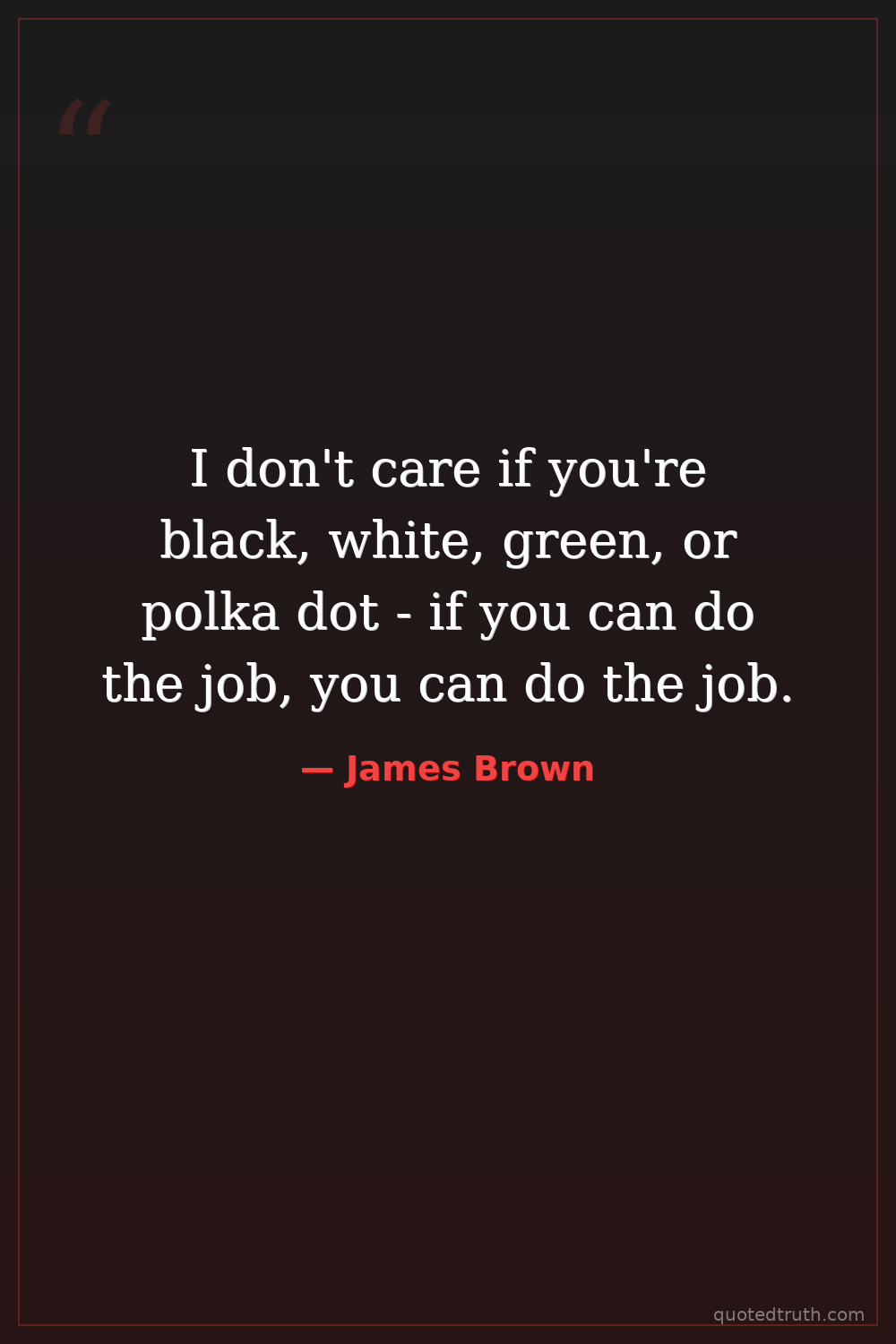I don't care if you're black, white, green, or polka dot - if you can do the job, you can do the job.