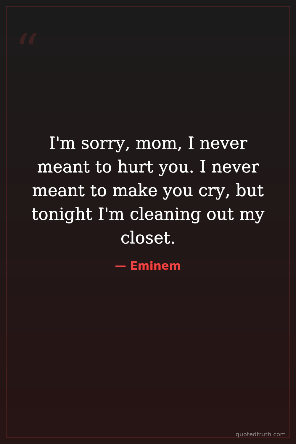 I'm sorry, mom, I never meant to hurt you. I never meant to make you cry, but tonight I'm cleaning out my closet.