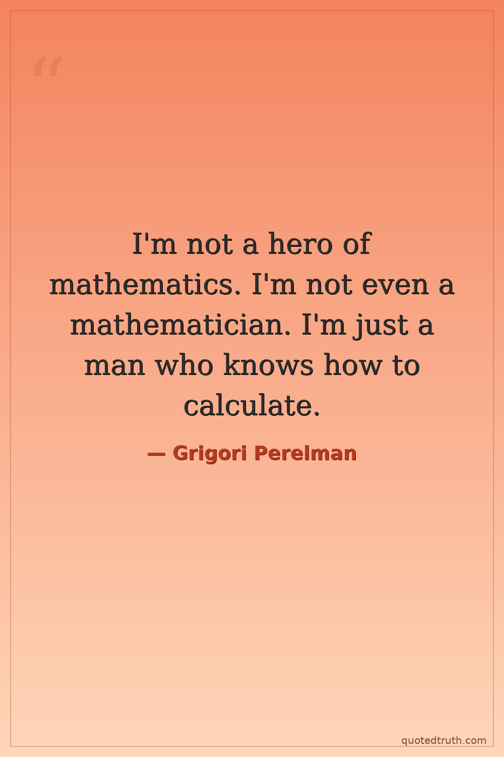 I'm not a hero of mathematics. I'm not even a mathematician. I'm just a man who knows how to calculate.