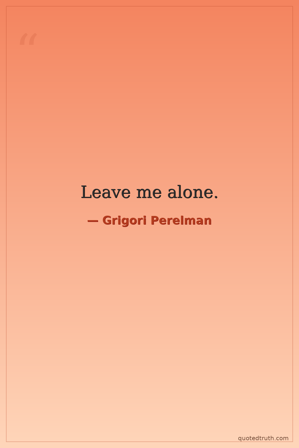 Humorous"I do not think that the mathematical community has the right to decide whether I should accept or reject the prize. I have my own reasons. If my proof is correct, then I don't need any other recogniti…"
