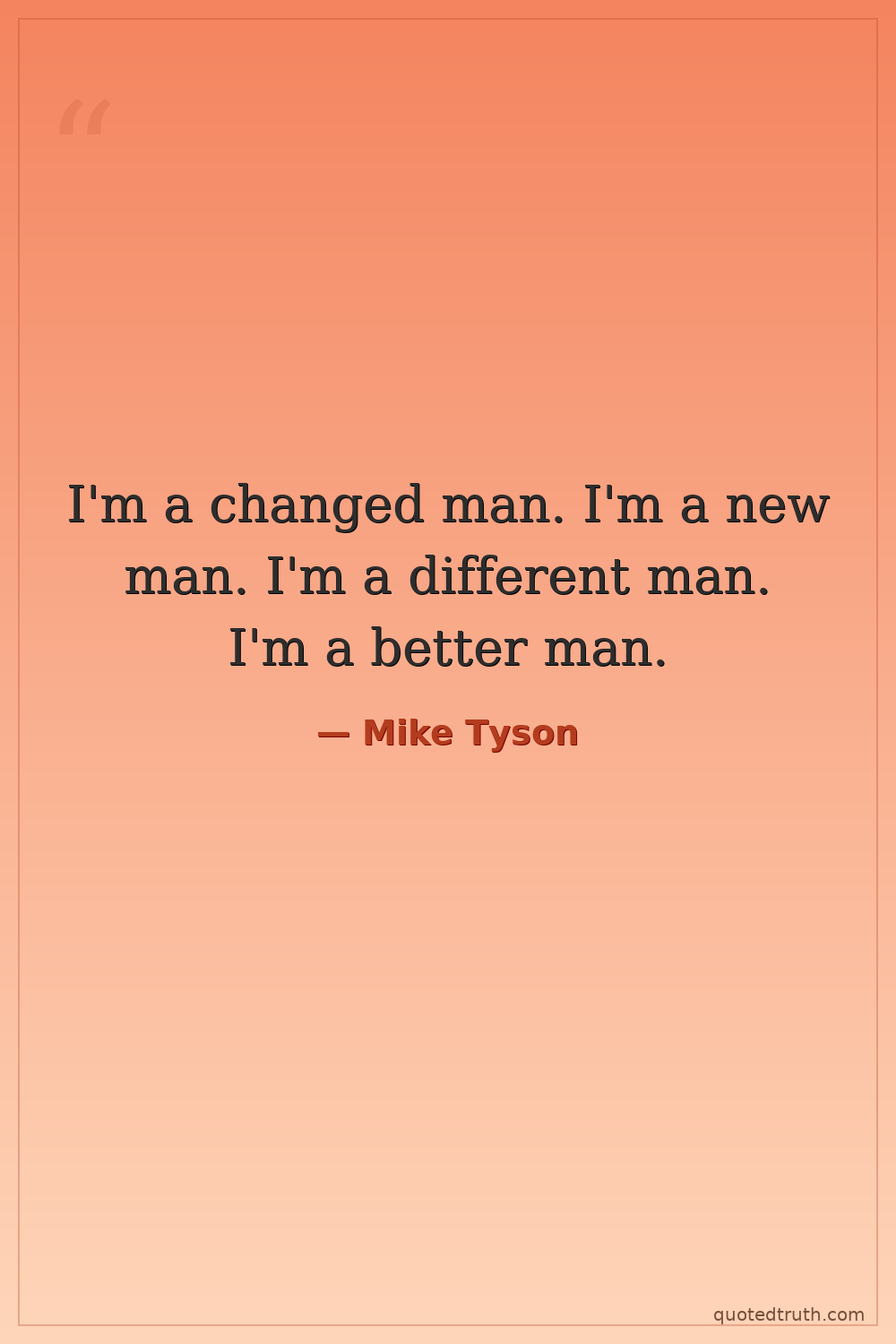 I'm a changed man. I'm a new man. I'm a different man. I'm a better man.