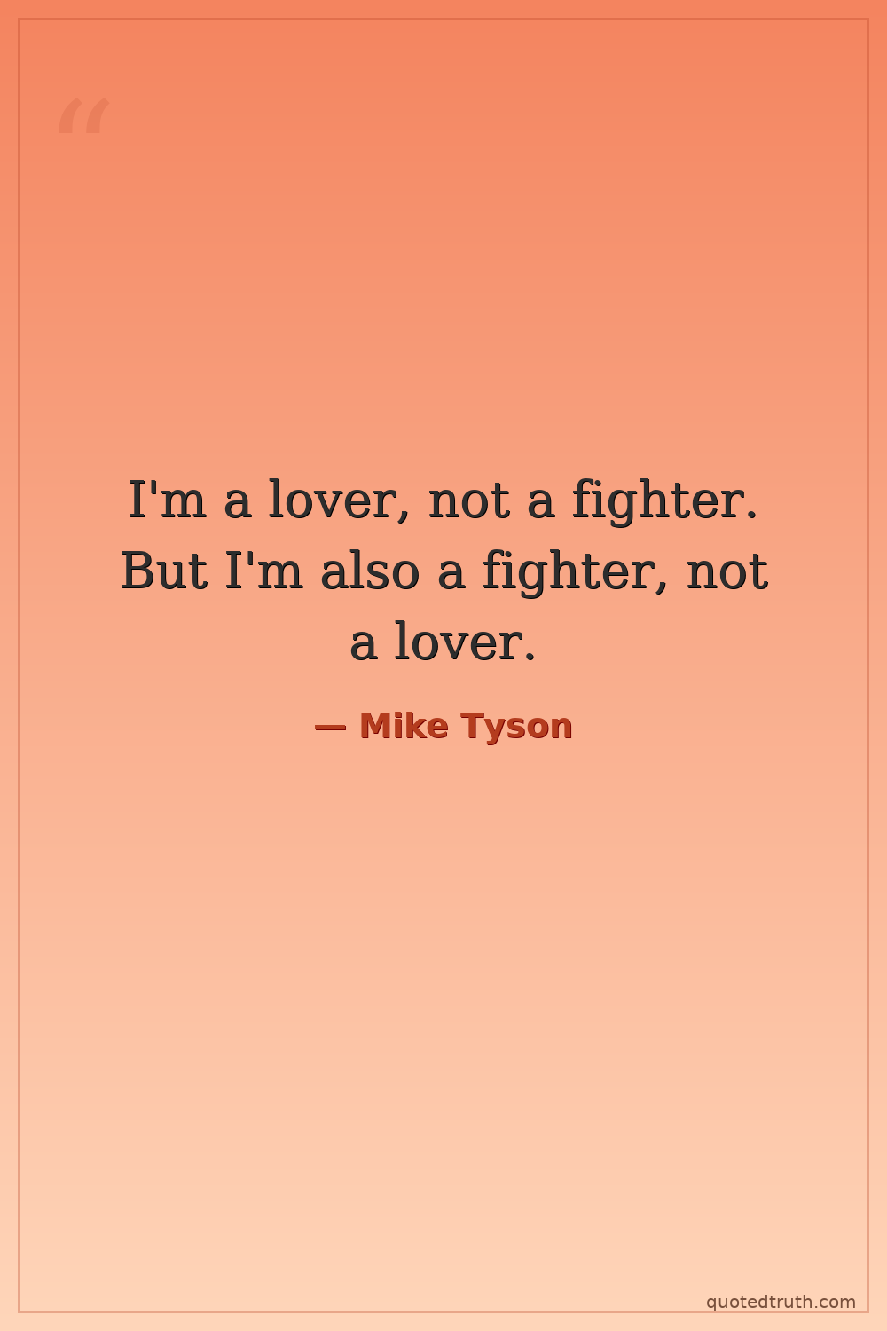 I'm a lover, not a fighter. But I'm also a fighter, not a lover.