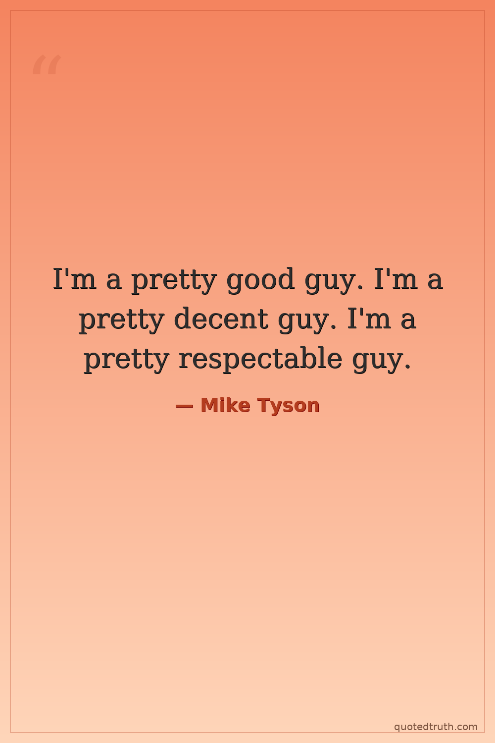 I'm a pretty good guy. I'm a pretty decent guy. I'm a pretty respectable guy.