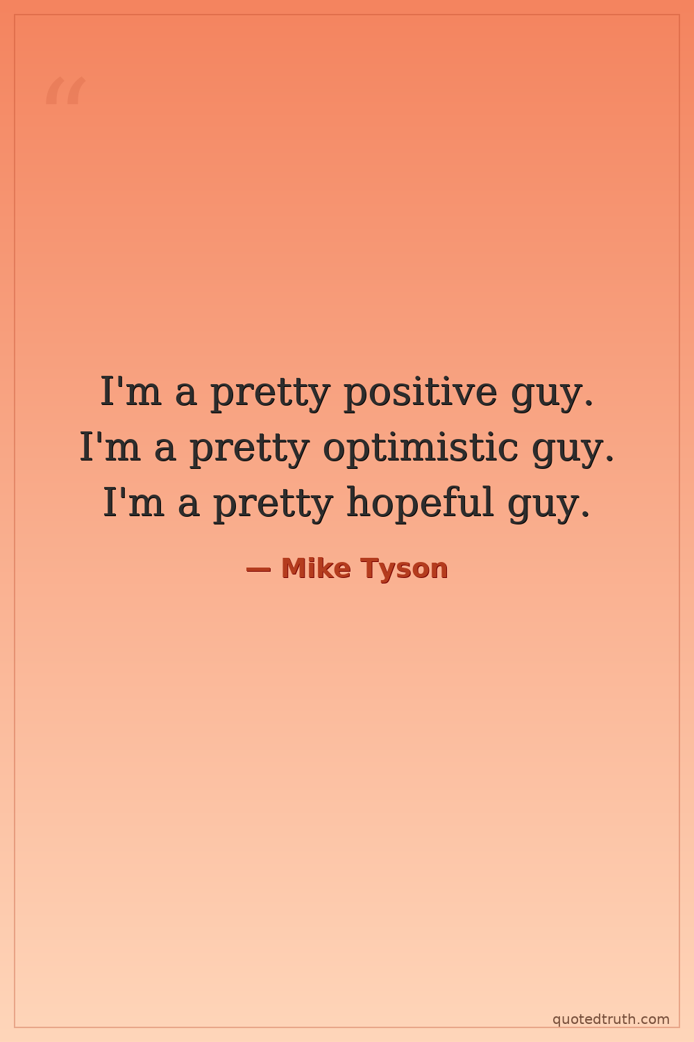 I'm a pretty positive guy. I'm a pretty optimistic guy. I'm a pretty hopeful guy.