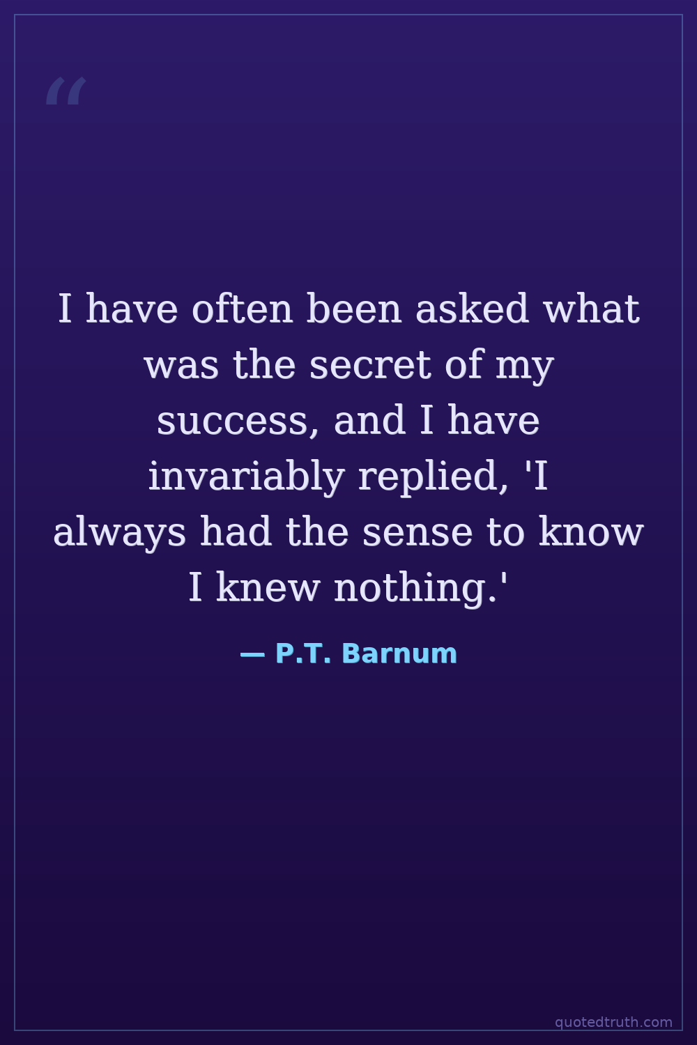 I have often been asked what was the secret of my success, and I have invariably replied, 'I always had the sense to know I knew nothing.'