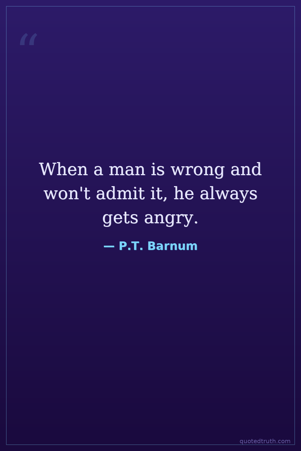 When a man is wrong and won't admit it, he always gets angry.