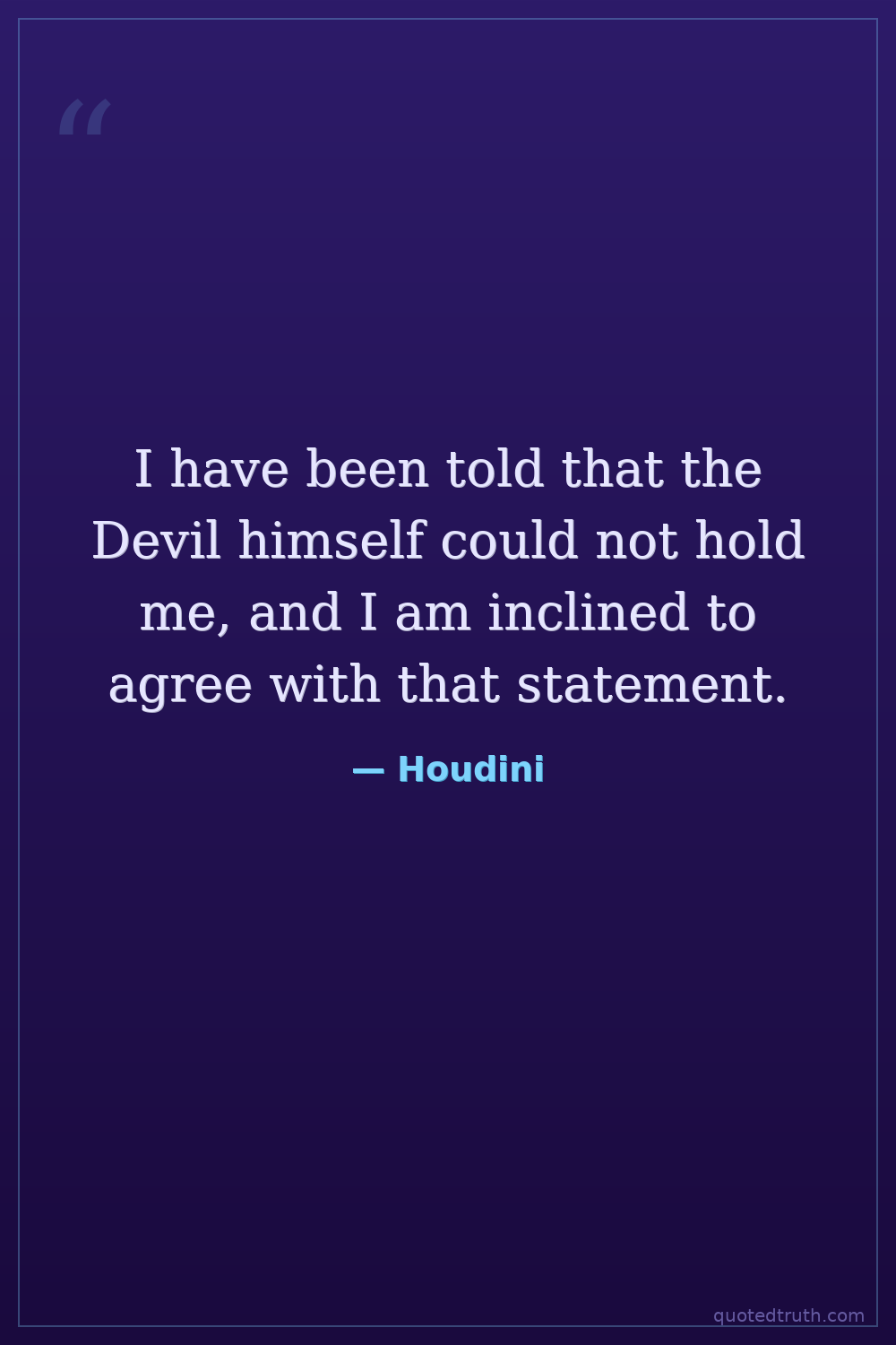 I have been told that the Devil himself could not hold me, and I am inclined to agree with that statement.