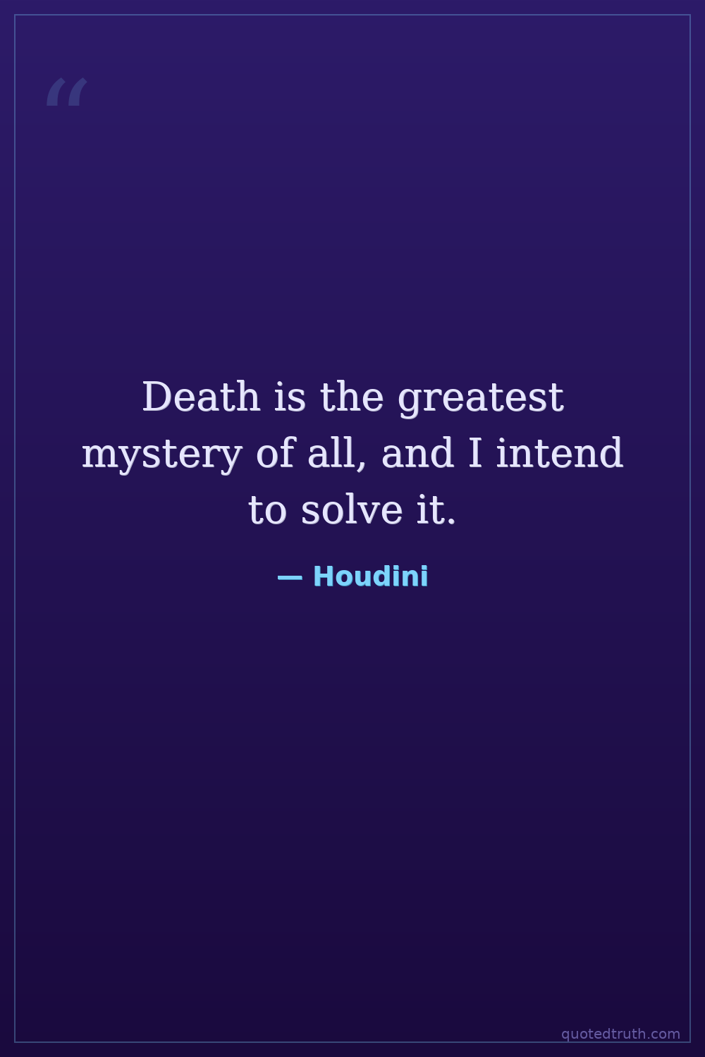 Death is the greatest mystery of all, and I intend to solve it.