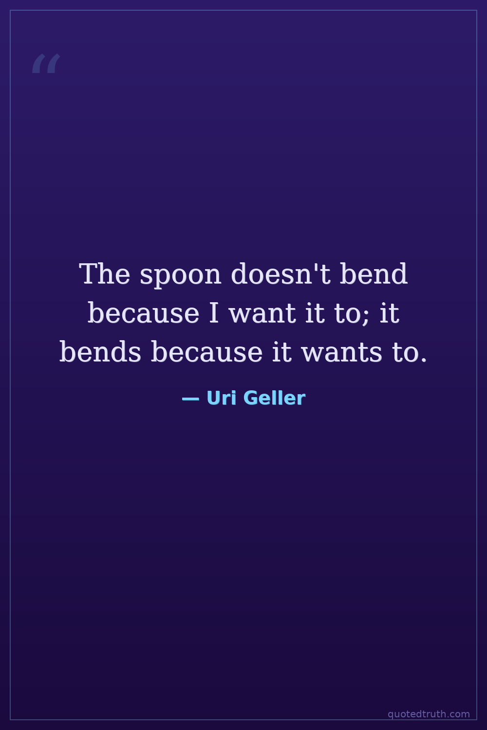 The spoon doesn't bend because I want it to; it bends because it wants to.