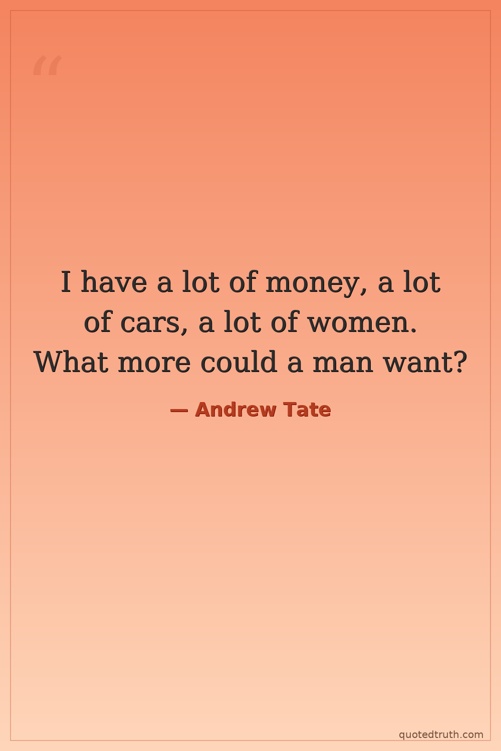 I have a lot of money, a lot of cars, a lot of women. What more could a man want?
