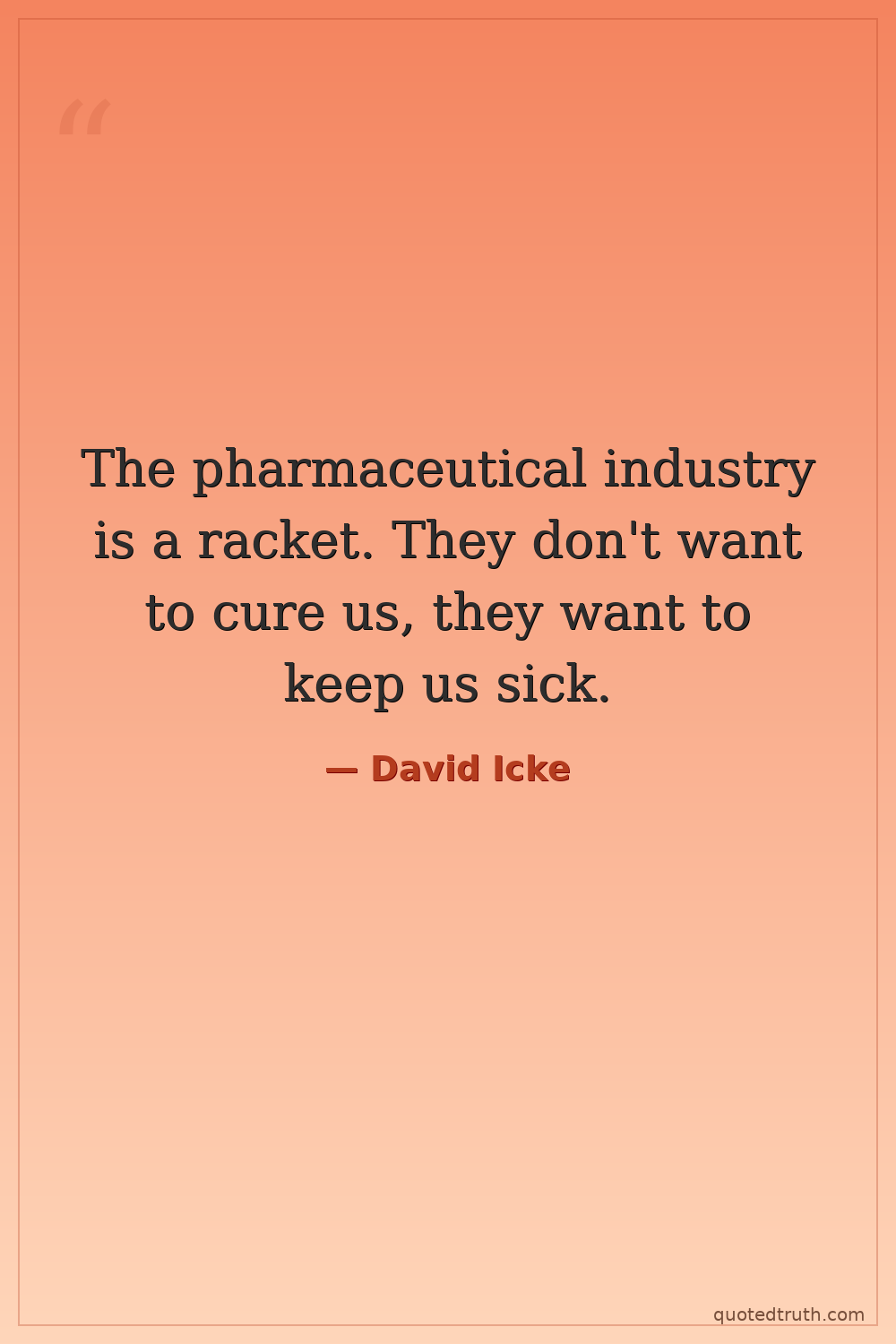 The pharmaceutical industry is a racket. They don't want to cure us, they want to keep us sick.