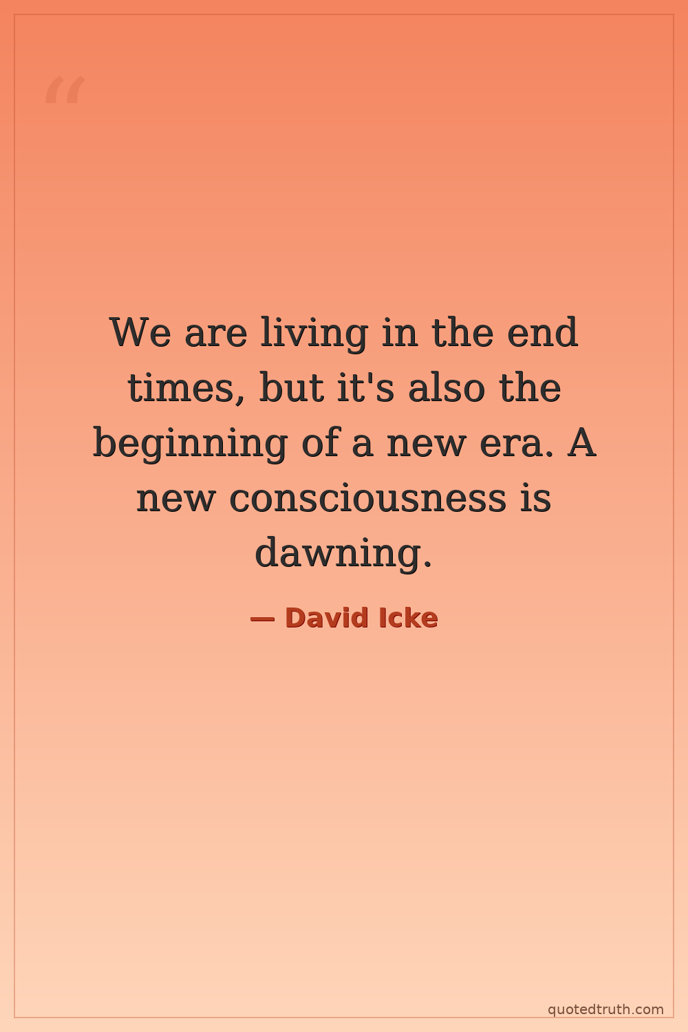 We are living in the end times, but it's also the beginning of a new era. A new consciousness is dawning.