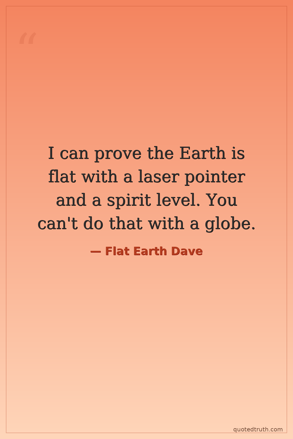 I can prove the Earth is flat with a laser pointer and a spirit level. You can't do that with a globe.