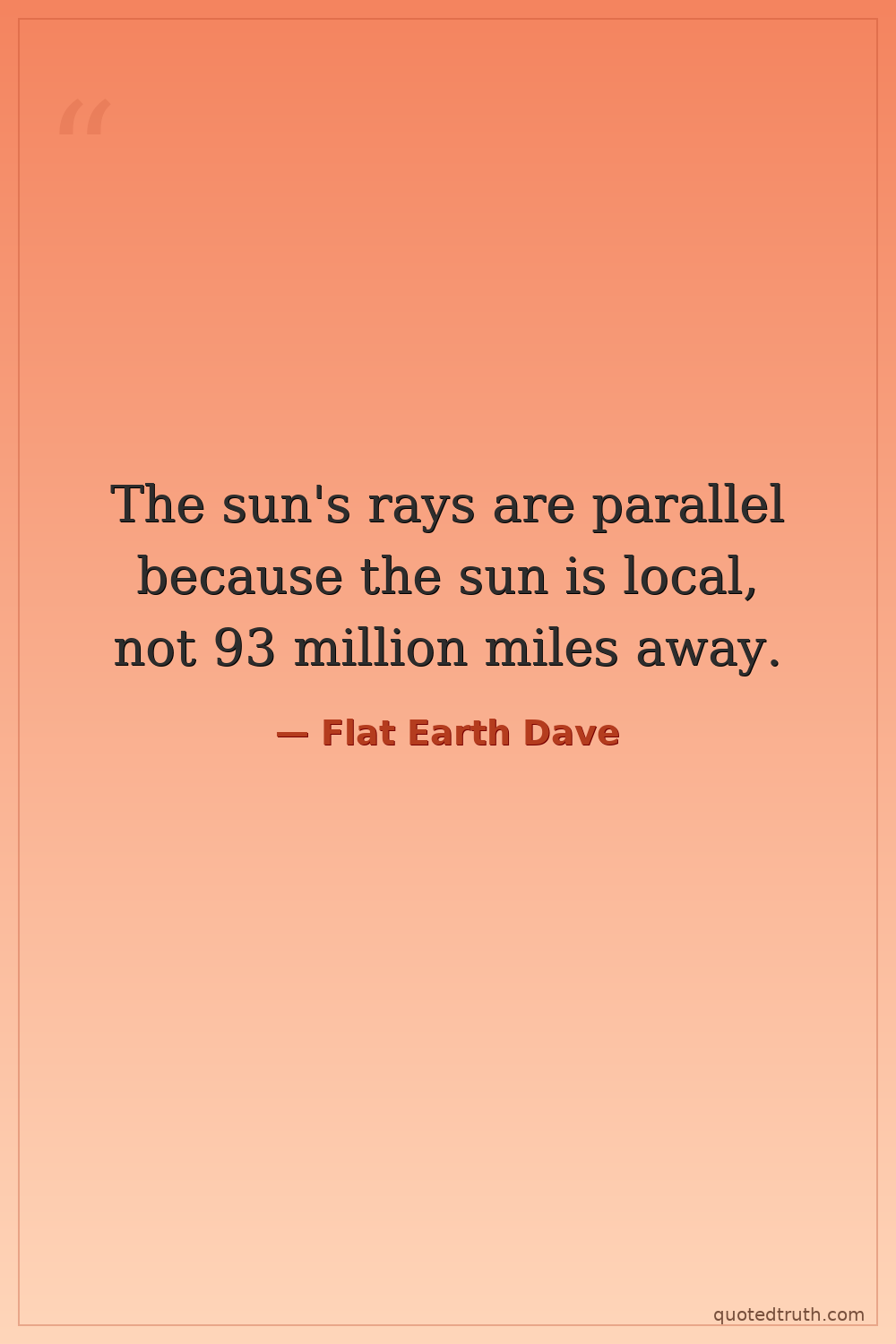 Controversial"The horizon always rises to eye level, which proves the Earth is flat. On a ball, it would drop."