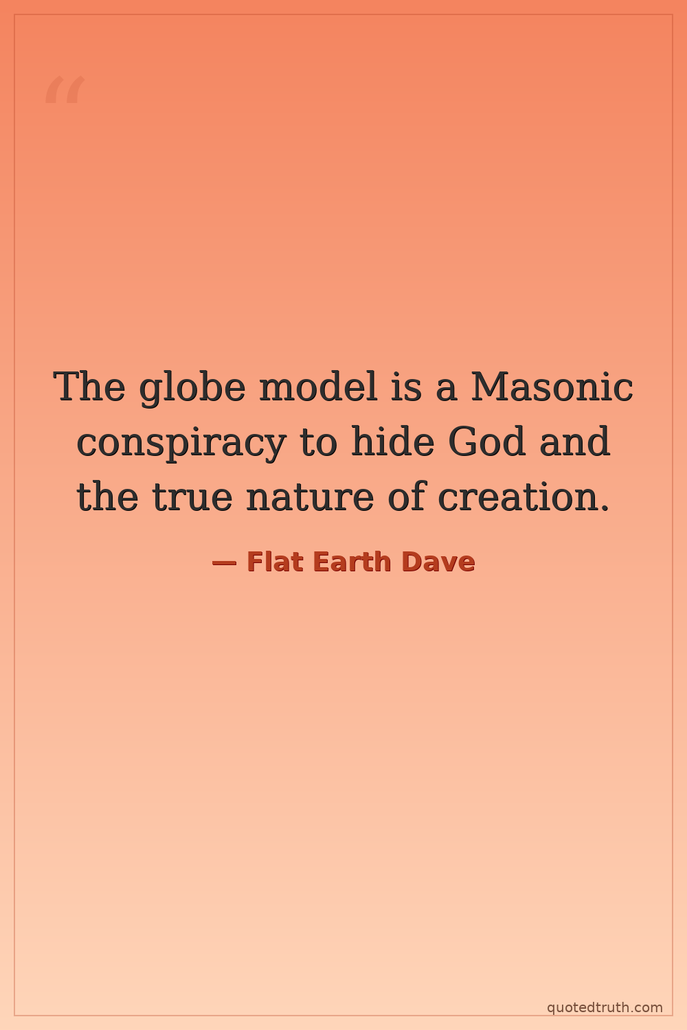 The globe model is a Masonic conspiracy to hide God and the true nature of creation.