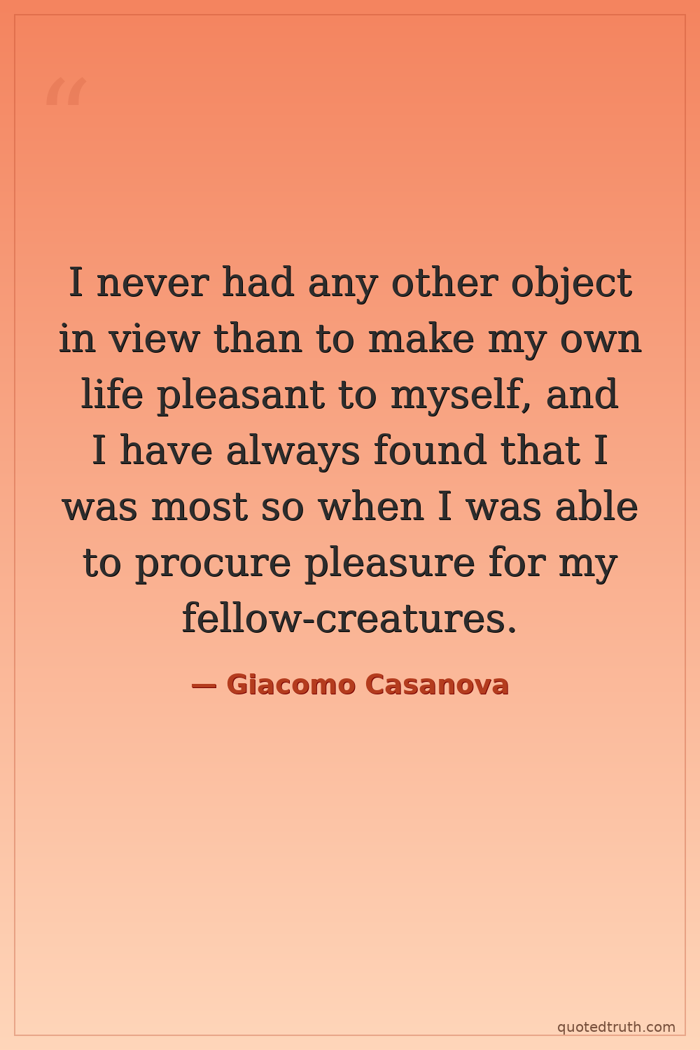 I never had any other object in view than to make my own life pleasant to myself, and I have always found that I was most so when I was able to procure pleasure for my fellow-creatures.