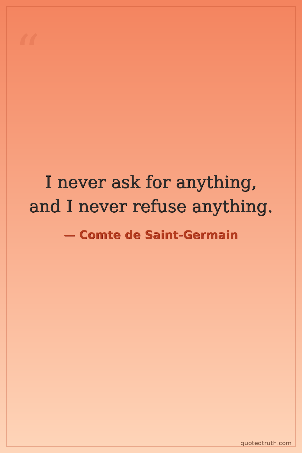 I never ask for anything, and I never refuse anything.