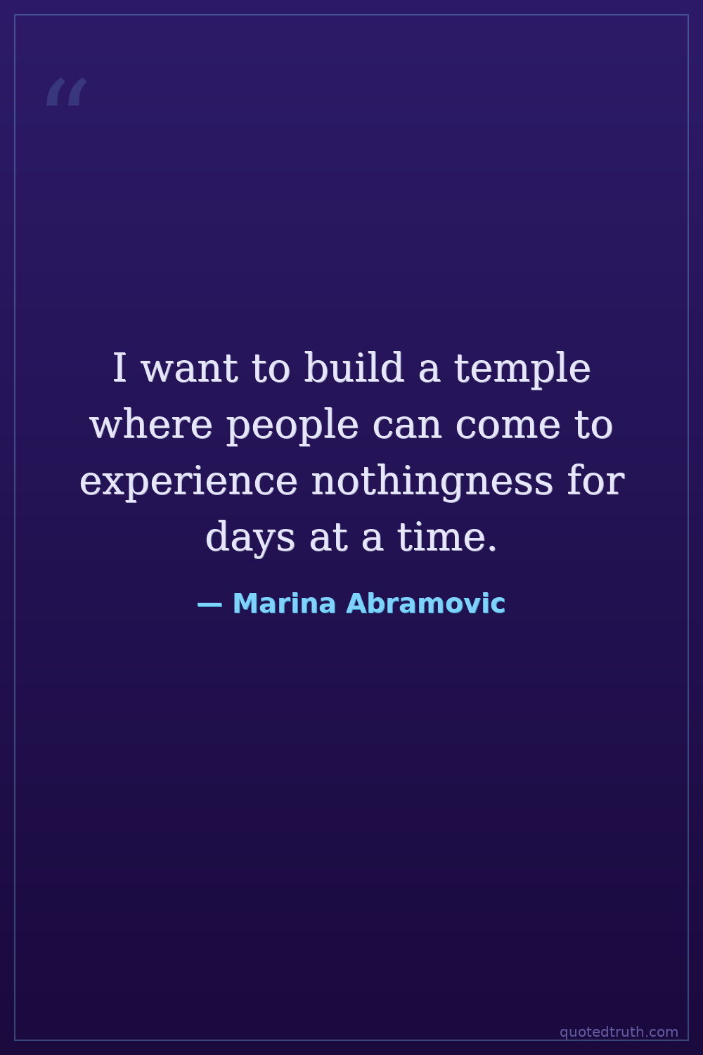I want to build a temple where people can come to experience nothingness for days at a time.